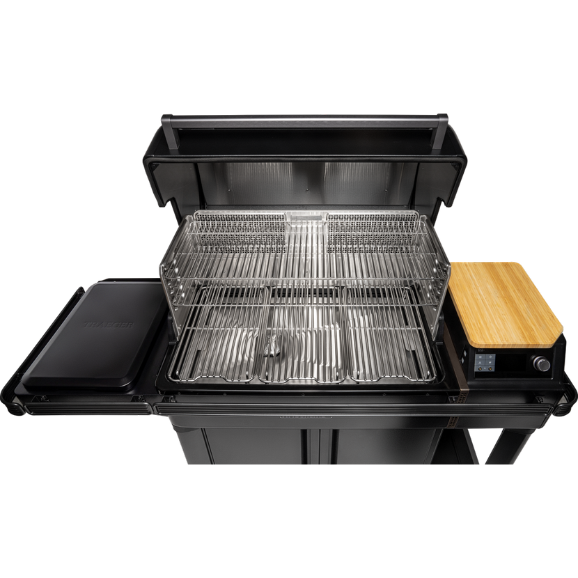 Traeger Timberline přináší zcela nový pohled na grilování. Nejde jen o gril – je to kompletní venkovní kuchyňské centrum s moderním designem, inteligentními technologiemi a širokým spektrem využití. Vedle prostorné grilovací plochy ve třech patrech je navíc vybaven výkonným indukčním vařičem, který posouvá možnosti venkovní přípravy jídel na maximum. Grilujte, vařte, uďte, pečte – vše na jednom místě a s nezaměnitelnou chutí dřeva.