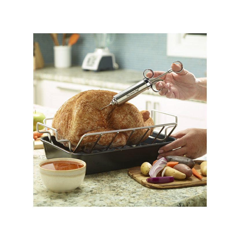 A ten nejlepší recept na to nejlahodnější pečené maso nebo drůbež? Vstříkněte do něj chutnou marinádu, olej nebo vlastní tajnou směs. Dávkovací stříkačka se dodává se dvěmi odšroubovatelnými jehlami z nerezové oceli s délkou 6,5 cm. Použití i čištění je hračka. Dejte však pozor, při umývání v myčce by se jehly mohly ucpat.