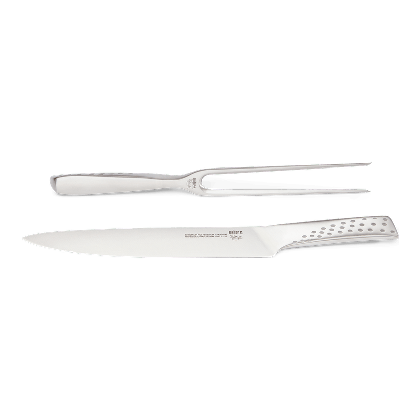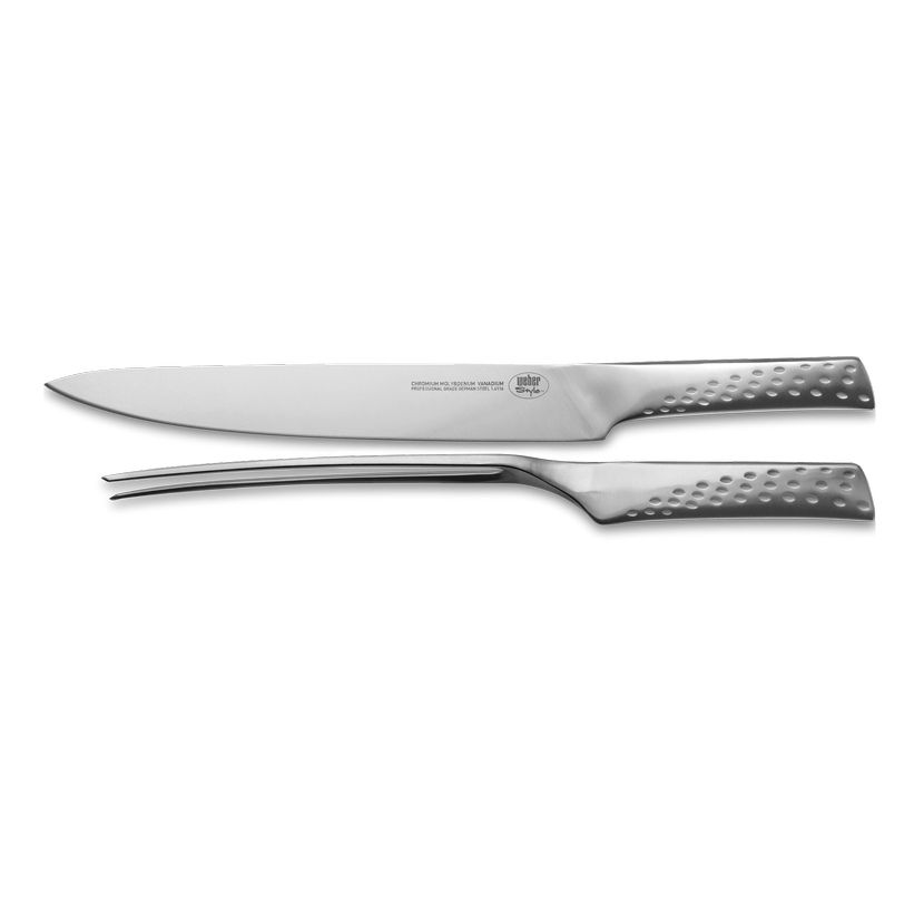 Kuchyňské nože Weber Deluxe jsou vyrobeny z nerezové oceli vysoké kvality a ve své kuchyni je jistě ocení každý nadšenec do vaření a grilování. Perfektně ostré hrany vám výrazně usnadní přípravu jídla na gril a díky ergonomické rukojeti vám krásně padnou do ruky. Stylový desig je jednotný se sadou příborů Weber a vy tak můžete mít kompletně sladěný jídelní set spolu s nádobím Weber.