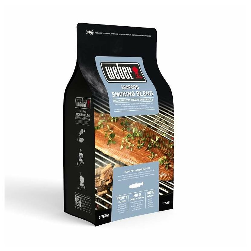 Weber ve svém sortimentu nabízí několik druhů dřeva na uzení, z nichž každý přidá svou vlastní charakteristickou vůni do grilované potraviny. Zde se jedná o udící lupínky určené především k uzení mořských plodů.