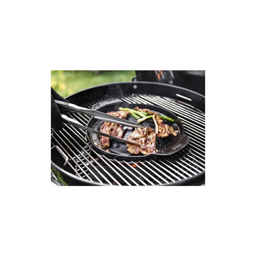 Pánev je však možné používat i samostatně, a to položenou na klasickém roštu. Je primárně určena pro kotlové grily Weber o průměru 57 cm a plynové grily Spirit, Genesis a Summit. Rošt s vyměnitelným středem obsahují některé grily v základní výbavě, v opačném případě je nutno jej zakoupit samostatně.