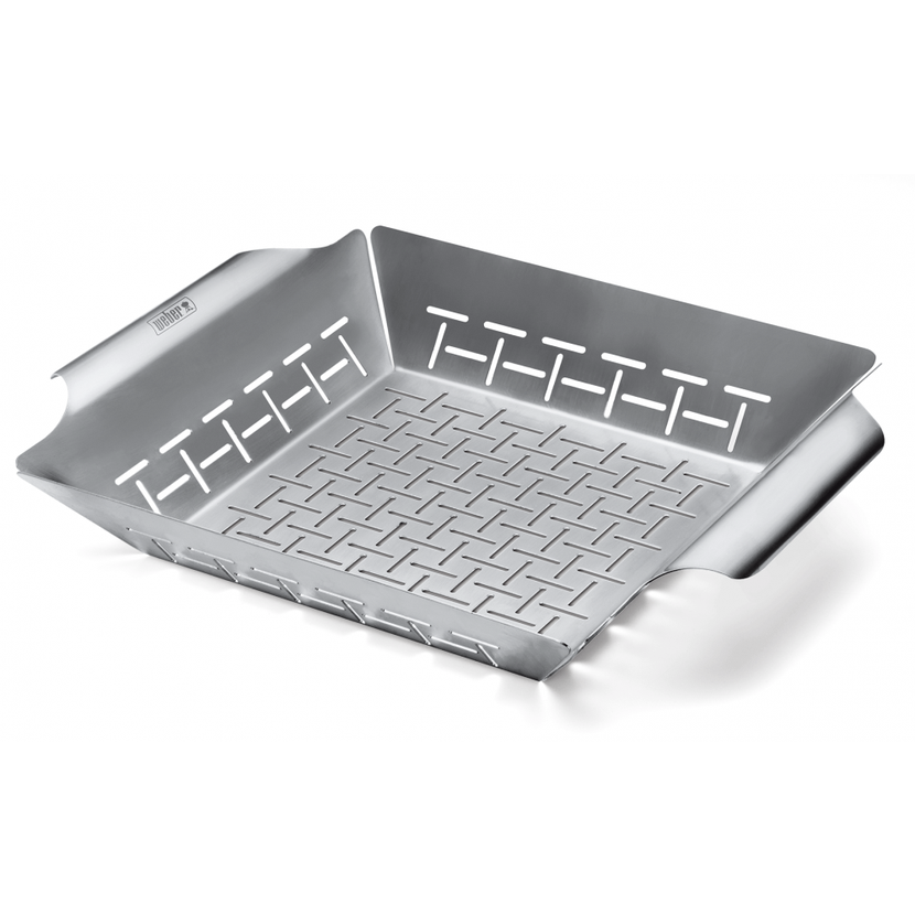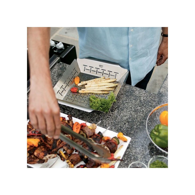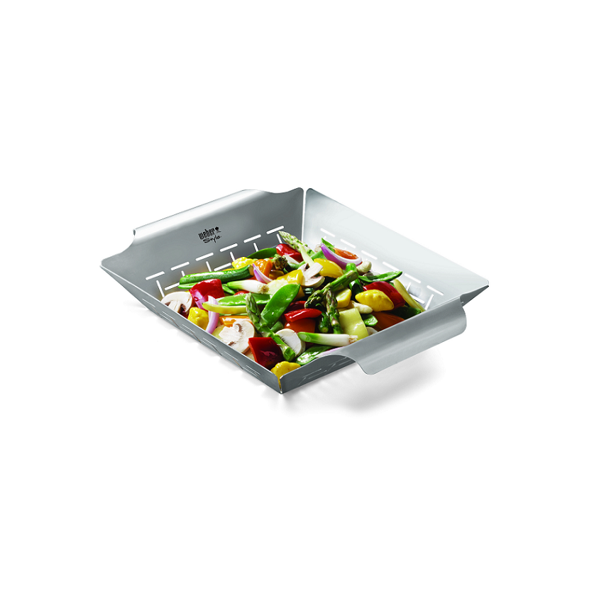 Malý koš na zeleninu je dalším kouskem z kolekce luxusních doplňků pro grily z řady Weber Style. Perfektně se hodí při grilování na drobnější kousky nakrájené zeleniny. Je vyroben z vysokojakostní nerezové oceli a lze jej používat na všechny grily Weber z produktové řady Q 300/3000 a také na grily z kolekce BBQ s grilovací plochou o průměru až 57 cm.