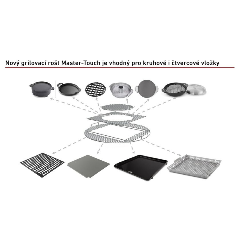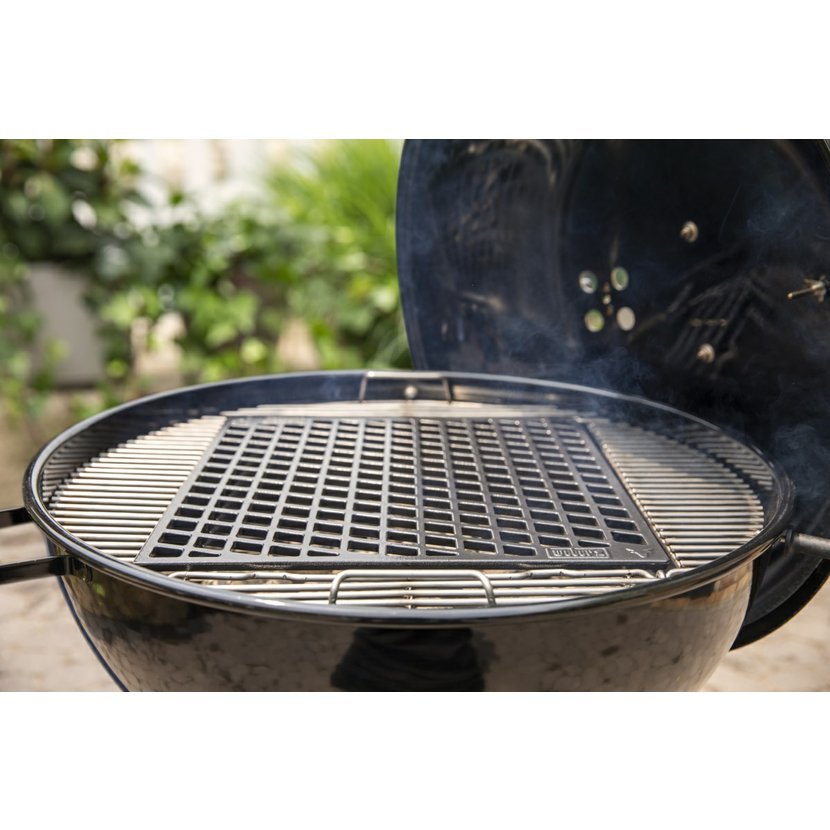 🌟 Gourmet BBQ systém: Vyměnitelný střed grilovacího roštu umožňuje grilování nejrůznějších pokrmů – od steaku s křupavou mřížkou až po pomalu pečené kuře.