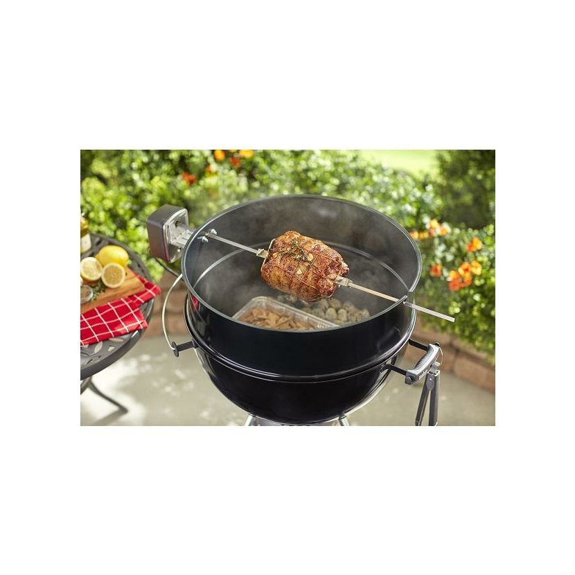 Tento otáčecí špíz značky Weber je poháněn elektrickým motorem, který špíz rovnoměrně otáčí a grilované pokrmy jsou tak optimálně propečeny. Je zde přípojka na 220 V. Maximální hmotnost masa na špíz může být až 11kg.