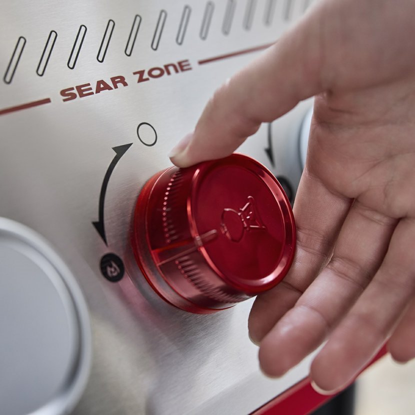 🔥 Sear Burner: Speciální hořák s až o 50 % vyšším výkonem vytváří rozlehlou Sear Zone pro perfektní opečení steaků, ryb a zeleniny.
