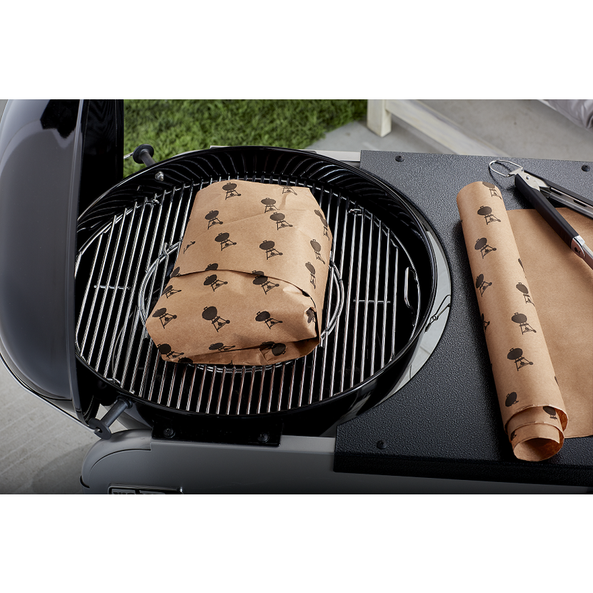 Podávejte šťavnaté maso s dokonale vypečenou krustou zabalenou do řeznického papíru. Obalením masa na konci pomalého uzení při nižší teplotě zachováte šťavnatost pokrmu. Papír je vyroben z přírodní surové celulózy. Rozměry: 45,72 cm x 47,85 m