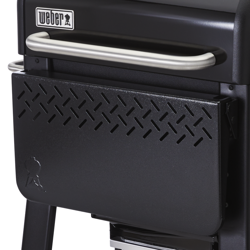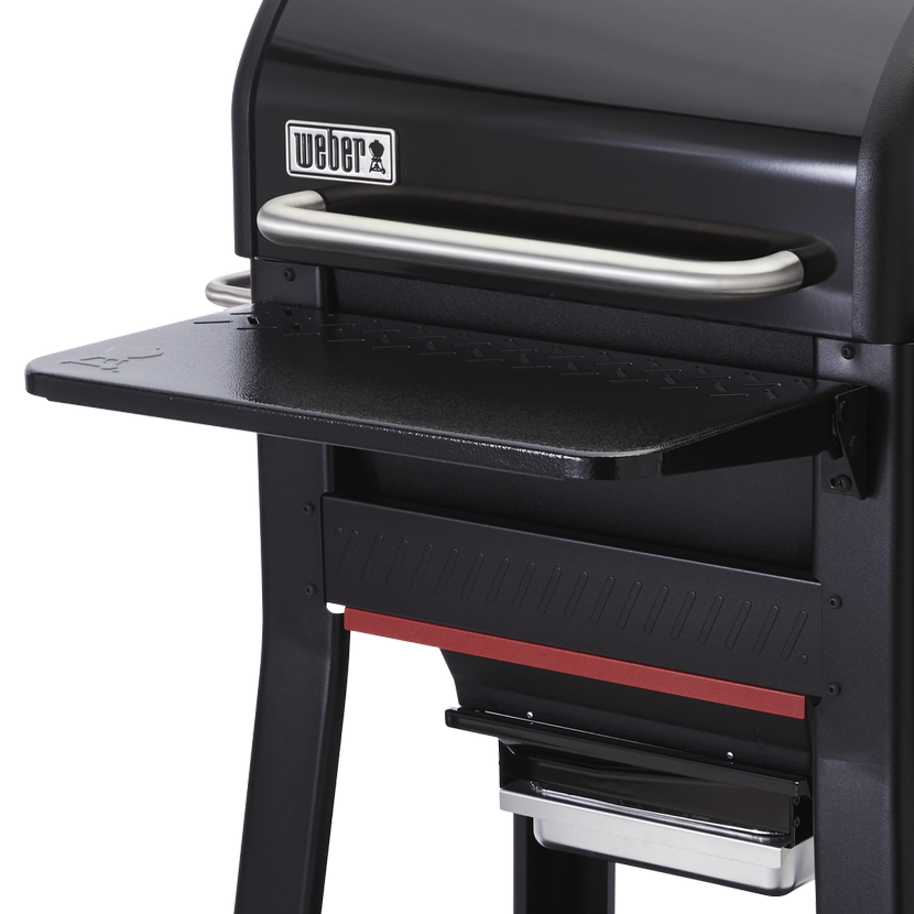 Stolek je vyroben z odolné oceli a je speciálně navržen pro peletový gril Weber Searwood (neplatí pro verzi XL, která má vlastní stolek). Montuje se z přední strany grilu a díky sklápěcímu mechanismu usnadňuje skladování – při složení se vejde pod odpovídající ochranný obal Weber. Přesto zůstává pevný a stabilní s nosností až 13 kg.