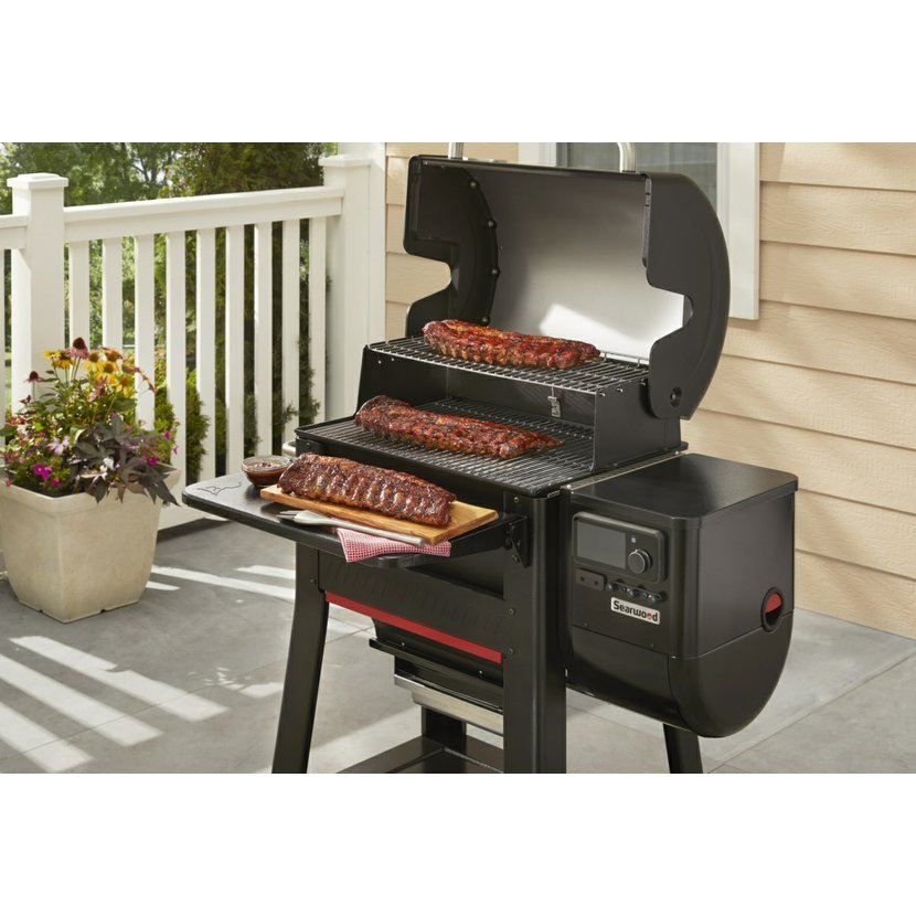Peletové grily Weber Searwood lze rozšířit o širokou škálu originálního příslušenství, které vám umožní přizpůsobit si grilovací plochu podle vašich potřeb. Můžete například vyměnit část grilovacího roštu za litinovou desku, rozšířit pracovní prostor pomocí předních a postranních stolků, nebo svůj gril ochránit originálním obalem Weber.