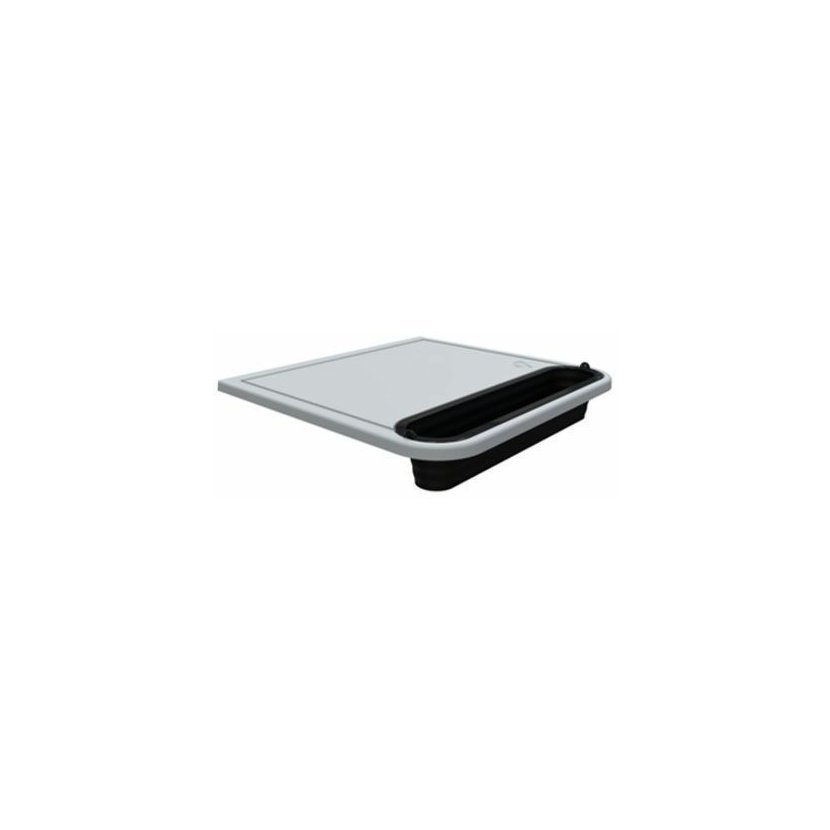 Prkénko padne přesně na postranní stolek grilu Weber Traveler. Do odnímatelné záchytné přihrádky můžete shrnout nakrájené jídlo, nebo ho použít jako misku na odpad. Záchytnou přihrádku lze složit pro snadné skladování.