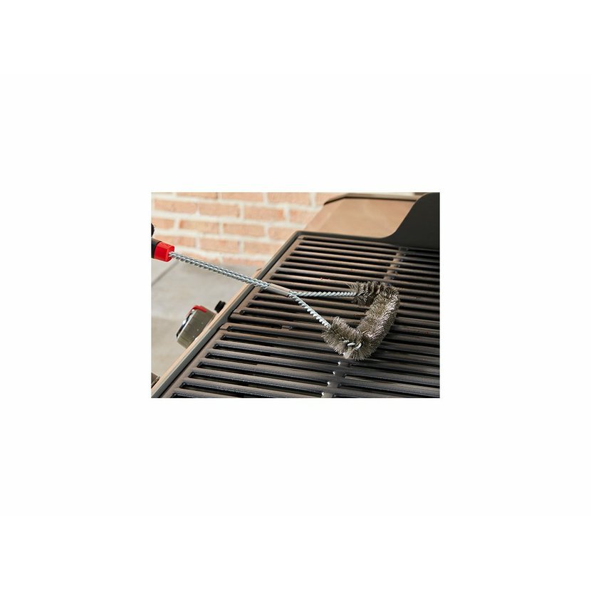 Kartáč je vybaven velkým množstvím ocelových štětin, které jsou navíc dobře nasměrovány na všechny strany, díky čemuž perfektně vyčistíte všechny části grilu. Díky kvalitě, s jakou jsou grily Weber vyrobeny, se povrch Vašeho grilu ani grilovacího roštu při čištění kartáčem nepoškodí. Rukojeť je vyrobena z duroplastu a na jejím konci se nachází poutko pro zavěšení kartáče na háček.